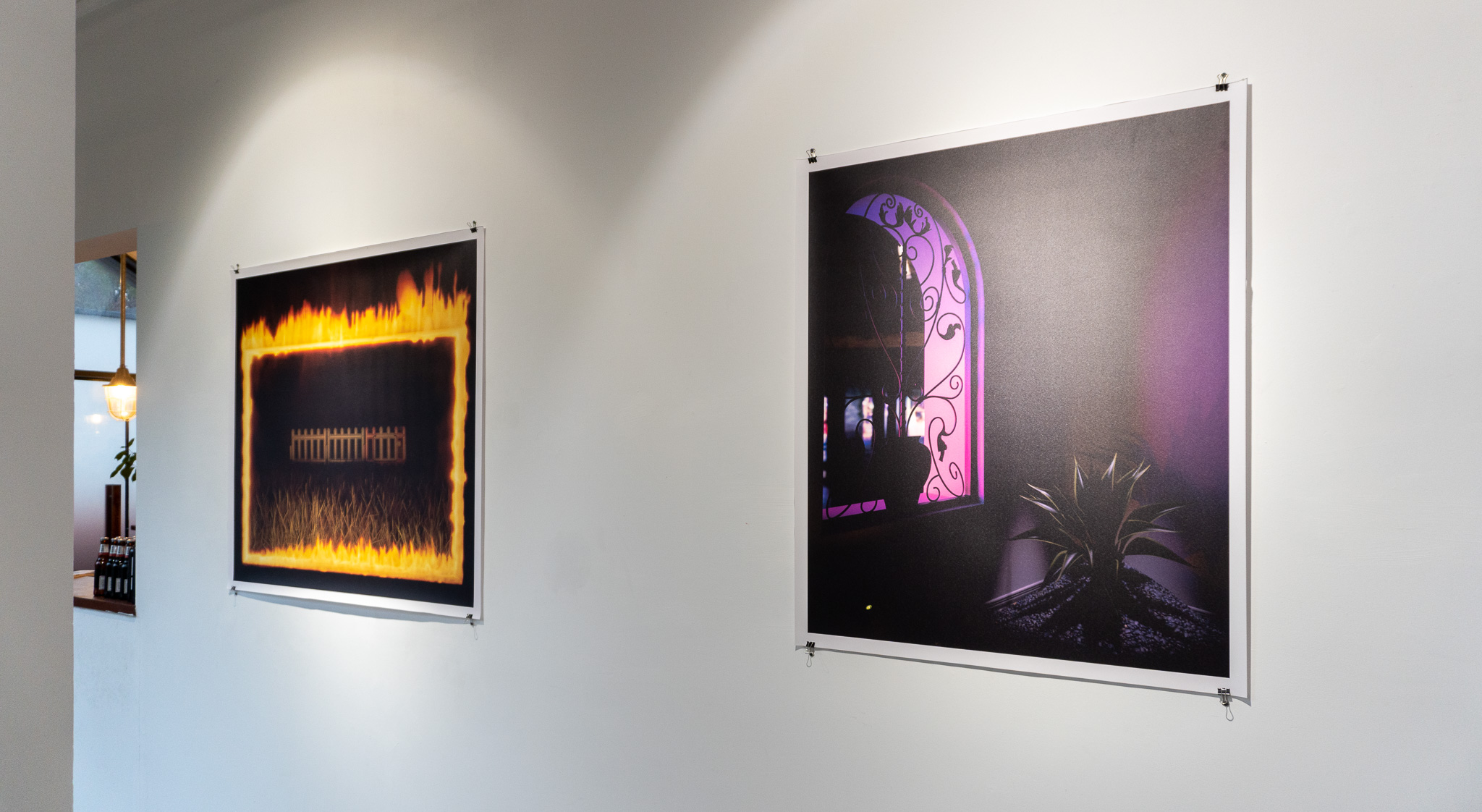 I stand still while the world spins into a vomit of colors and light. I tried dipping into the tornado and retrieved only some feverish shapes. Outsped, my eyes landed on the remaining things that have yet to catch on, a ribbon, a fence, a window, and an insect. Too shallow for beauty or grandeur, but keep me company in their motionless solidarity. By the light that filters in from outside, together they form image after image. The images are jammed and pressed and wound up into a reel. Never meant to become coherent, they slowly separate as the momentum fleets. They grow more and more apart, but contain a piece of each other still, completing a closed loop. Echoing the motions, they are the stuff of persisting vertigo.